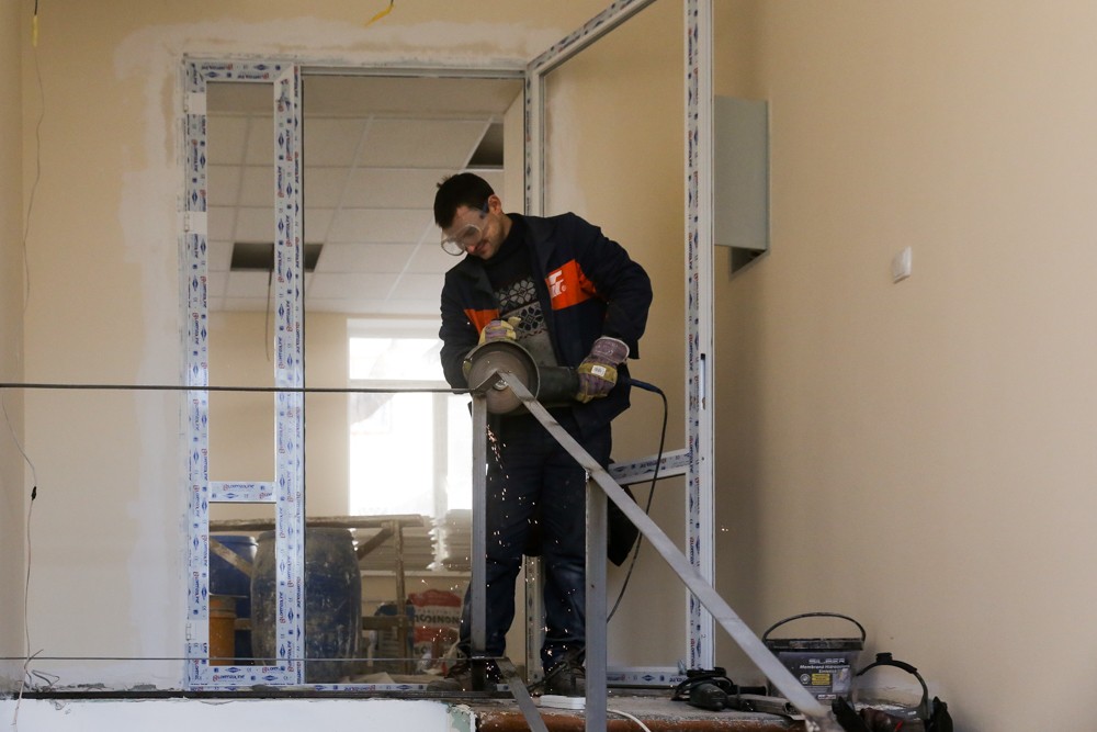 «Отделочные работы по откосам уже выполнены почти наполовину. Наша бригада из 5 человек за 2 дня зашпаклевала 20 окон, откосы не сильно разрушены, монтажники постарались. Никаких трудностей нет, всё идет нормально», — рассказал маляр Александра Бахнэ.