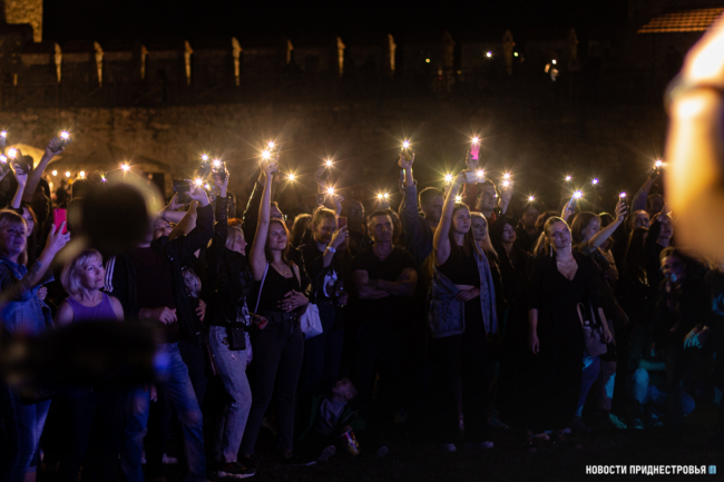Во время выступления рок-исполнителей все, кто пришёл в этот вечер в крепость, подпевали и танцевали. На одной из композиций цитадель осветили десятки фонариков.