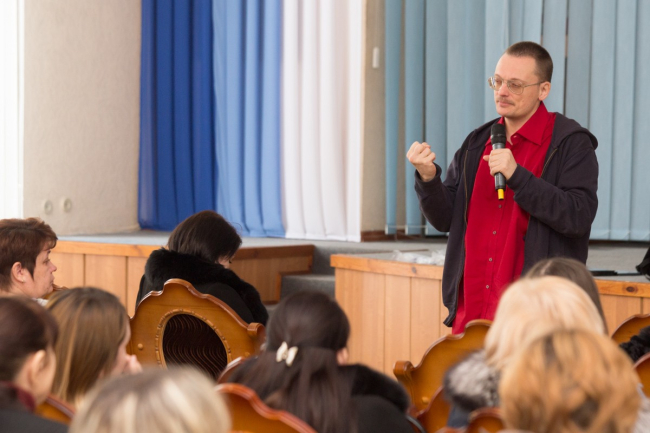 Тирасполь, 28 февраля. /Новости Приднестровья/. Российский журналист, режиссёр и сценарист Василий Яцкин сегодня встретился с приднестровскими педагогам и прочёл для них лекцию об информационных войнах и об основах духовно-нравственного воспитания подрастающего поколения.