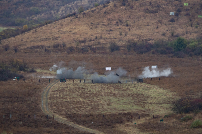 Проконтролировал этап боевой стрельбы врио министра обороны генерал-майор Сергей Герасютенко.