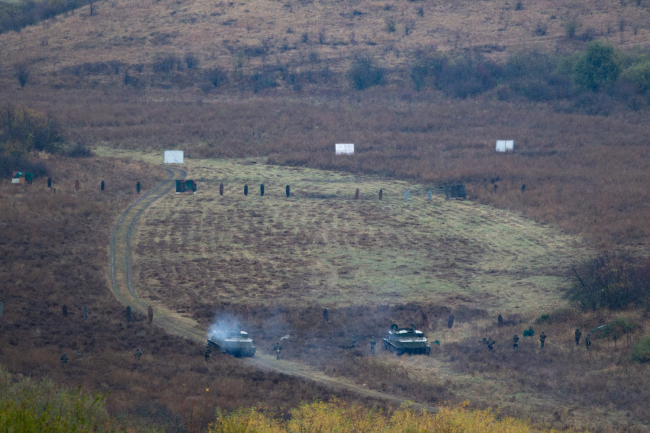 В рамках финальной фазы учений усиленной мотострелковой роте предстояло отразить атаку передовых подразделений условного противника и провести контратаку.