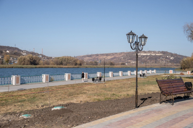 Глава государства побывал и на рыбницкой набережной. Благоустраиваемый по улице Вальченко парк будет более зеленым. Здесь обновляют землю, чтобы растения лучше приживались. В ноябре привезут посадочный материал, проинформировал Президента глава госадминистрации. Показал Виктор Тягай и визуализированный проект парковой ротонды. Ее установят в будущем году.