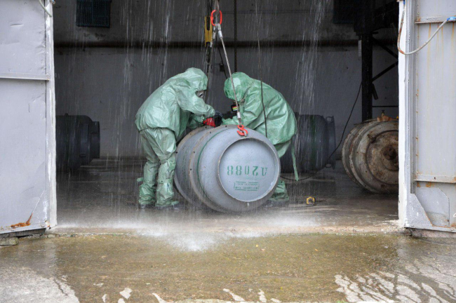 Участники тактико-специальных учений произвели химическую разведку, оповещение и эвакуацию сотрудников предприятия. Утечка хлора была локализована, выставлены посты охраны.