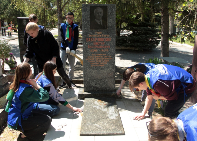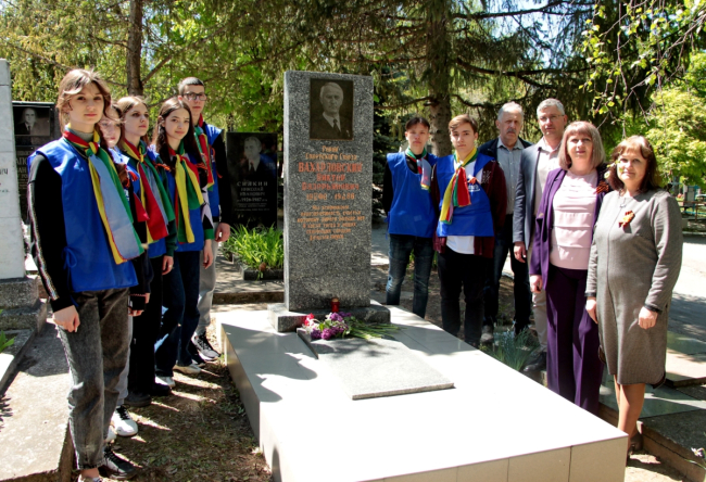 Рыбницкие «Волонтёры Победы» обновили памятник Герою Советского Союза Виктору Вахарловскому