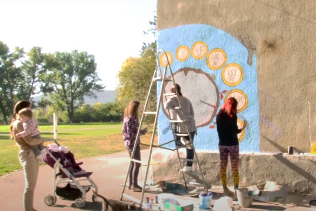 Рыбницкие волонтёры разукрасили стену сельской школы эко-граффити