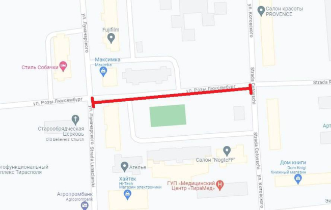 С 20 ноября в Тирасполе перекроют часть улицы Розы Люксембург