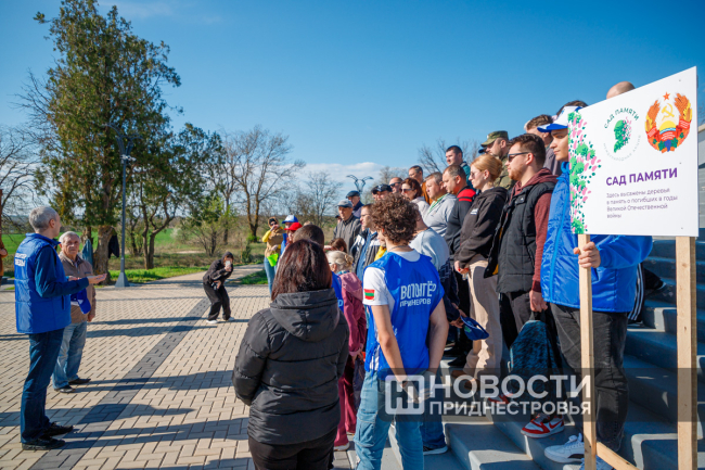 «Сад памяти» на плацдарме закладывали сообща. Это молодёжь из разных общественных организаций: «Волонтёры Победы», городской клуб Тирасполя, «Гражданская инициатива», «Волонтёры Приднестровья», Приднестровский госуниверситет, молодёжный парламент, Правительство, а  также слободзейская госадминистрация.