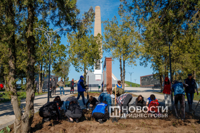 «Школьные отряды "Волонтёров Победы" активно принимают участие в акции, они высаживают деревья на пришкольных участках. В прошлом году мы сажали в дендропарке. Сегодня делаем это в таком значимом месте. Его выбрали неслучайно: сейчас его активно благоустраивают. И вот мы такой большой силой решили сделать доброе дело не только для экологии, но и для сохранения нашей исторической памяти», – рассказал координатор международного представительства Всероссийского общественного движения "Волонтёры Победы" в ПМР - общественного движения "Волонтёры Победы. Приднестровье" Евгений Назаренко.