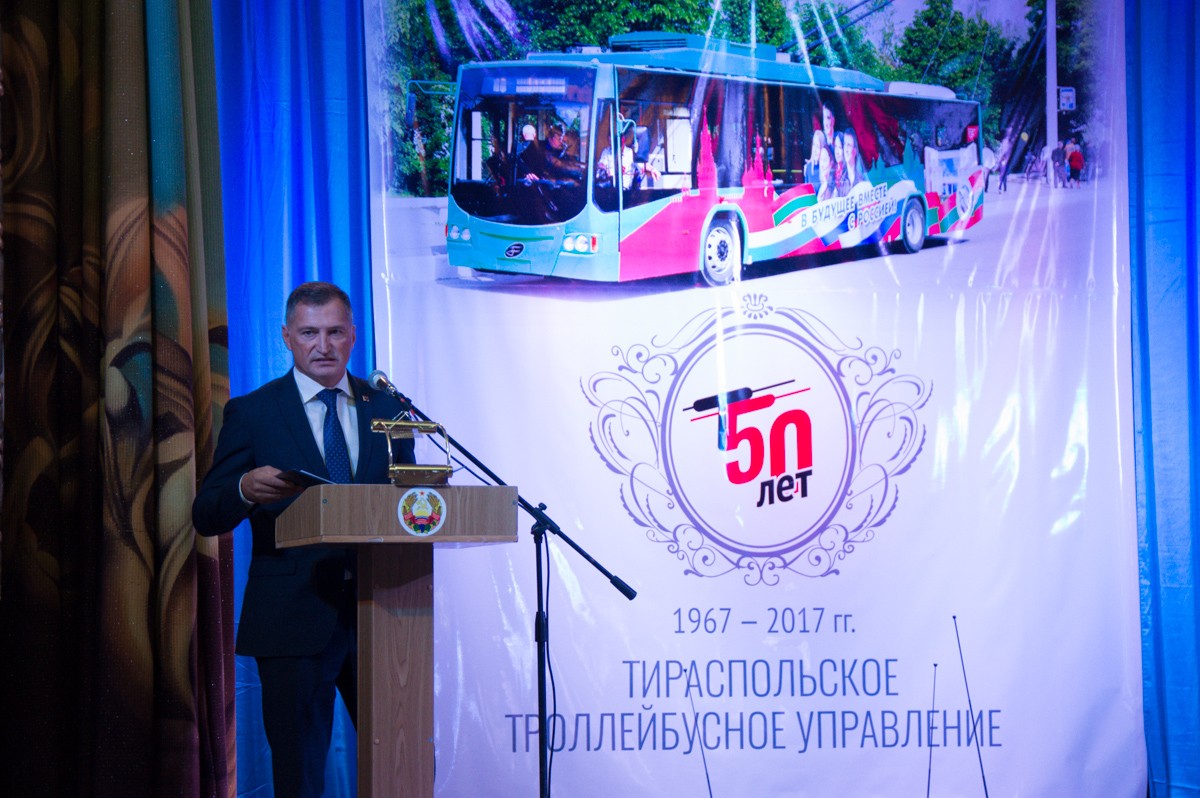 «Сегодня троллейбусное управление переживает тяжёлые времена, на это есть объективные обстоятельства и проблемы в Тирасполе, в частности, были попытки закрыть ТТУ, отменить и поставить под сомнение необходимость троллейбусного управления в Тирасполе. Напомню, что в Советском Союзе троллейбусы появлялись только в тех городах, где население превышало 250 тысяч, а у нас ТТУ было открыто благодаря Валентине Соловьёвой (директор фабрики «Одема», депутат Верховного Совета МССР) и Екатерине Фурцевой (министр культуры СССР). Но хочу заверить, что на сегодняшний день, независимо от того, сколько жителей будет в Тирасполе, троллейбусы были, есть и будут», – сказал он.