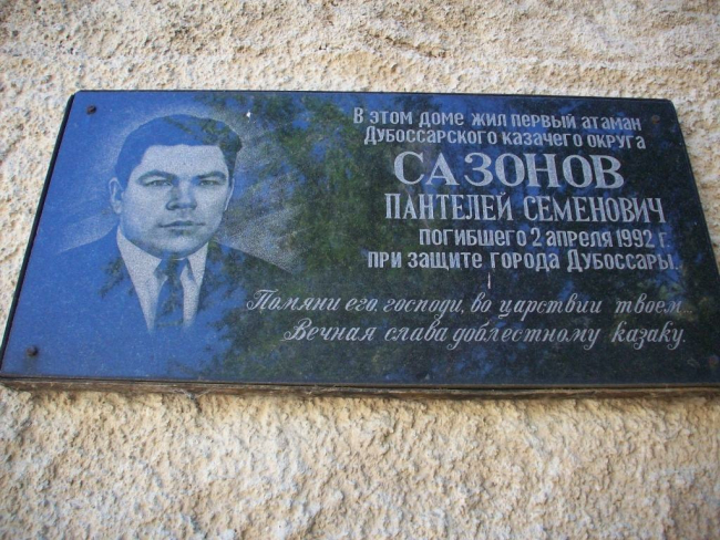 В честь первого атамана в Дубоссарах названы улица, казачья станица и основан нагрудный памятный знак «Сазоновец».