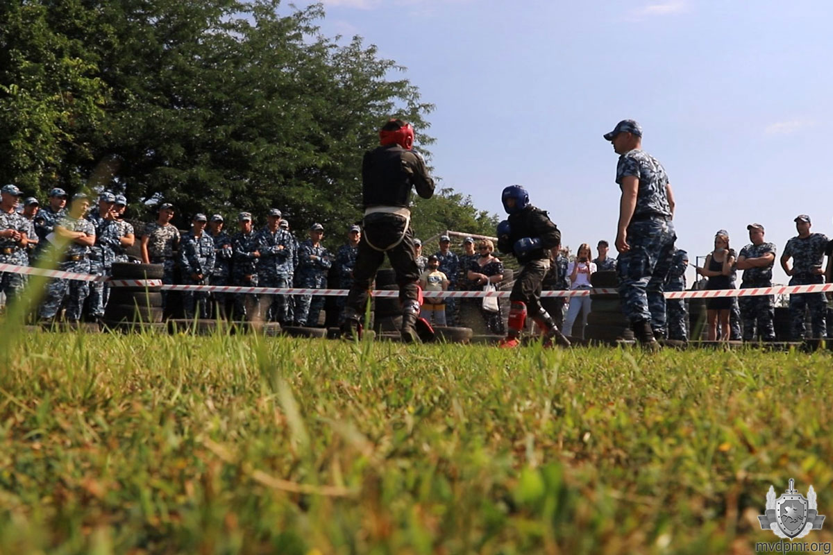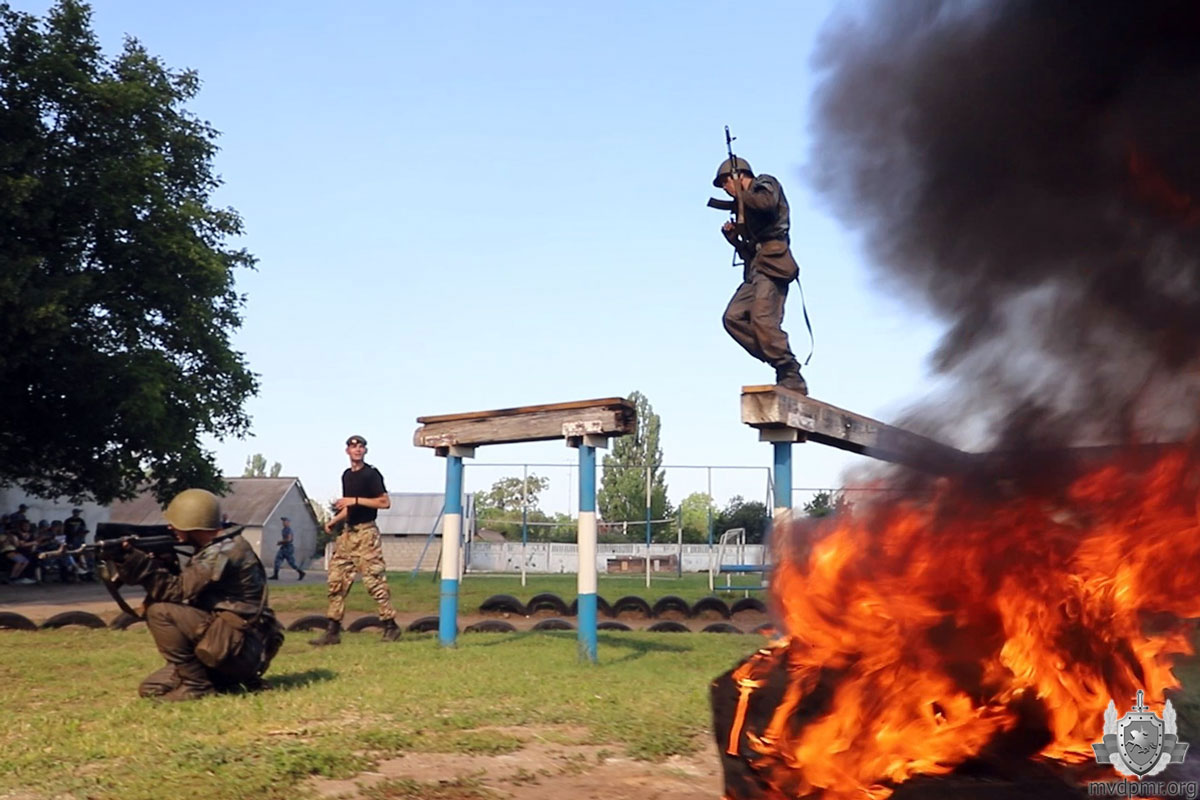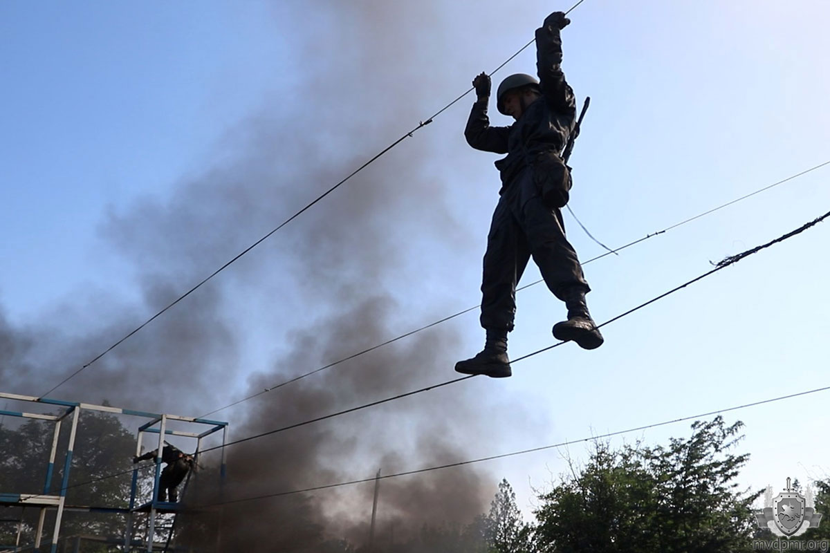 Марш-бросок завершился по месту дислокации подразделения. Уже там бойцов ждало следующее испытание – преодоление огненно-штурмовой полосы. Горящие покрышки, чёрный едкий дым создавали не только антураж, но и проблемы с дыханием. Правоохранители преодолели лабиринты, подземные ходы, мосты и стены, проползли под колючей проволокой, перешли канатные дороги. Не забыли при этом прикрывать линию фронта и тыл.
