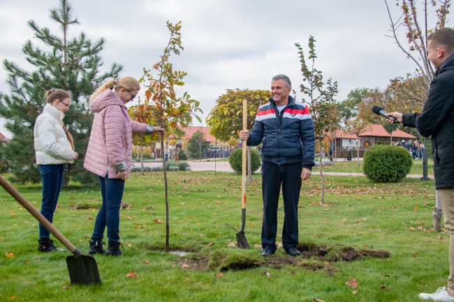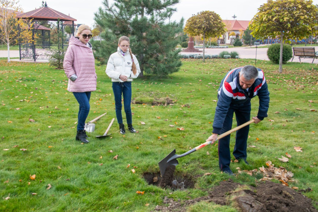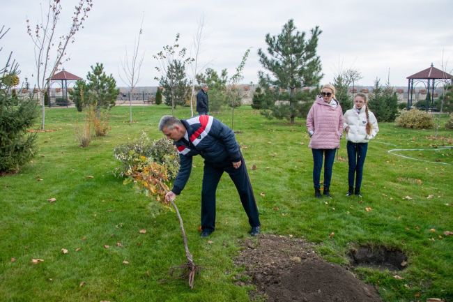 Вадим Красносельский с супругой и младшей дочерью высаживали дубы и павлонию