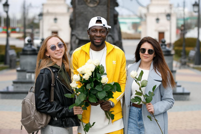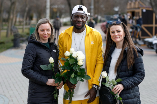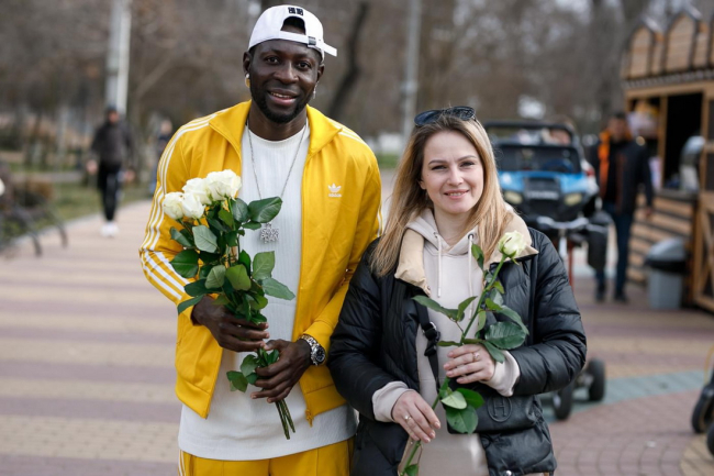 От имени жёлто-чёрных представительниц прекрасного пола на улицах столицы поздравлял легендарный футболист клуба Бенджамин Балима.