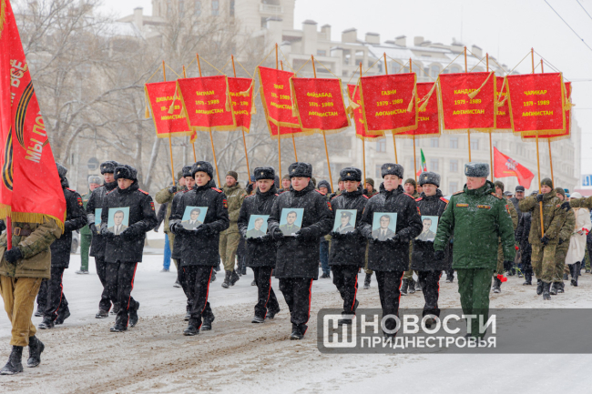 В столице мероприятия начались с традиционного шествия с портретами погибших афганцев-тираспольчан. Колонна прошла по центральной улице к Мемориалу Славы, где состоялся митинг-реквием. На нем присутствовали члены Правительства во главе с премьер-министром Александром Розенбергом, первый Президент Игорь Смирнов, представители депутатского корпуса, а также общественные организации, родные и близкие воинов-афганцев, сообщает пресс-служба Правительства ПМР.