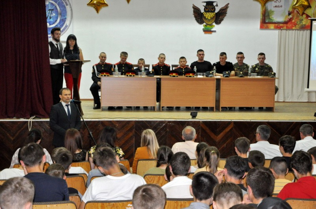 Кроме этого, Вячеслав Фролов и Вадим Лозовский совместно с курсантами образовательных учреждений силовых структур республики посетили Рыбницкий теоретический лицей, где состоялась встреча со школьниками района. Ребята продемонстрировали видеопрезентации учреждений, в которых обучаются, рассказали об их особенностях, преимуществах, а также сложностях, с которыми им иногда приходилось сталкиваться.