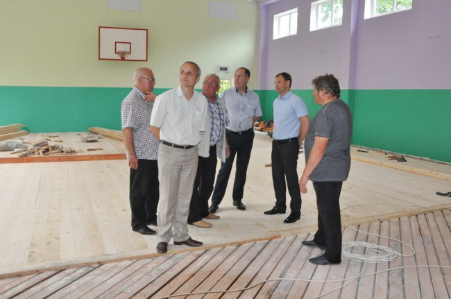 Сейчас рабочие укладывают полы в спортзале и готовятся к укладке ламината в актовом зале. Параллельно ремонтируется кровля над актовым и спортивным залами. Начались строительно-отделочные работы в школьной столовой и пищеблоке.