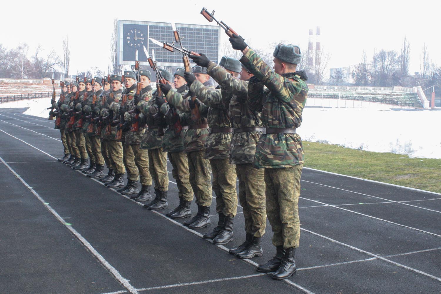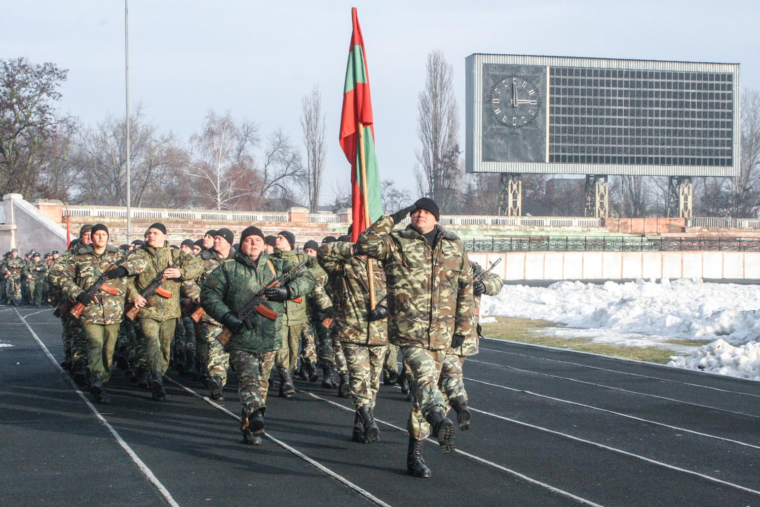 Три раза в неделю на стадионе проходят тренировки, которые начались в январе. Сегодня за подготовкой команд наблюдали министр обороны генерал-майор Олег Обручков и заместитель министра обороны полковник Игорь Довгулич.