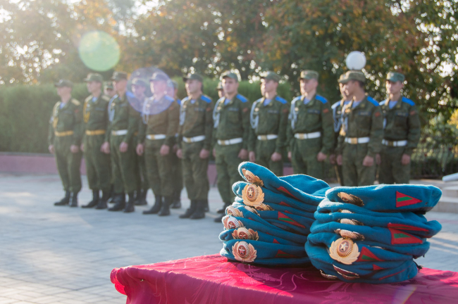Тирасполь, 9 октября. /Новости Приднестровья/. Военнослужащим парашютно-десантного подразделения спецназа Министерства обороны вручили голубые береты. Торжественный ритуал традиционно провели на столичном Мемориале Славы в присутствии родных и близких молодых людей. Получению заветного символа принадлежности к армейской элите предшествовало многое. Полгода молодые люди изучали матчасть, проходили многочисленные инструктажи, а непосредственно перед прыжками тренировки стали ежедневными.