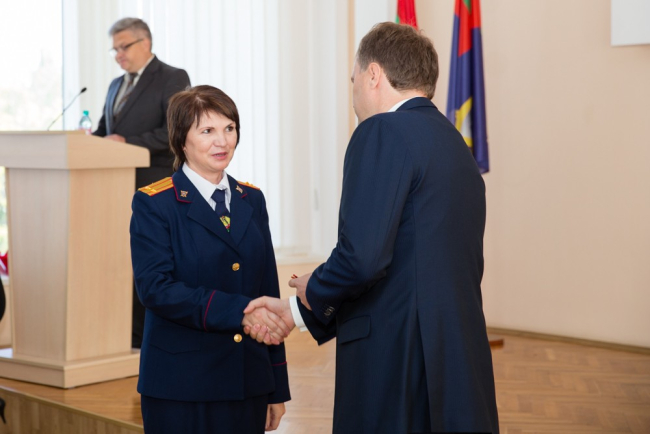 Сегодня отличившиеся сотрудники СК были удостоены государственных и ведомственных наград, ряду работников присвоены очередные специальные звания. По словам председателя комитета Ольги Дубровиной, больше всего звёзд на погоны получили работники слободзейского управления Следственного комитета, так как именно это подразделение СК является передовым по всем показателям.