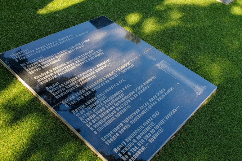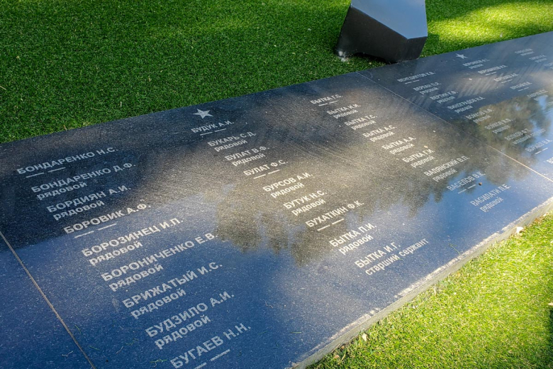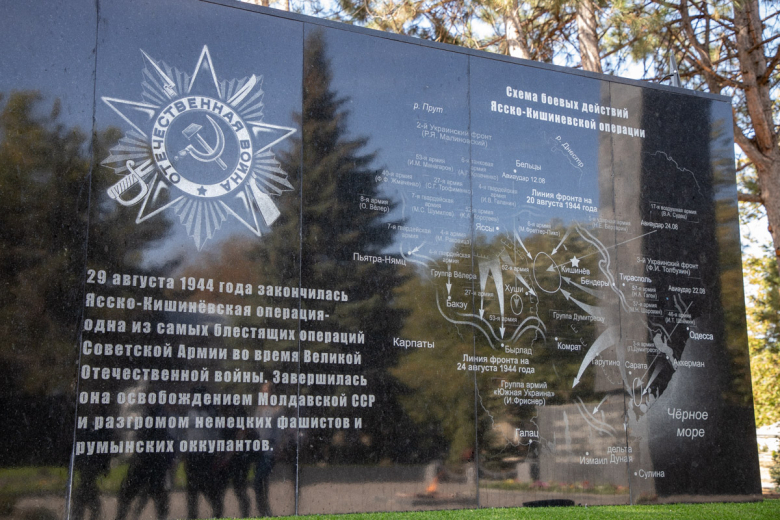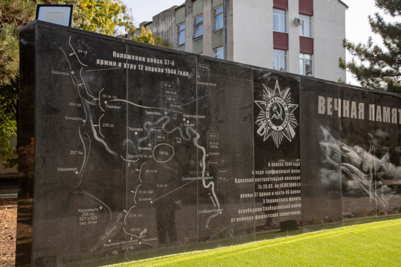 На мраморных плитах изображены сцены  боев времён Великой Отечественной войны. На Мемориале Славы увековечены имена более 800 воинов, которые погибли при освобождении Слободзейского района от немецко-фашистской оккупации. На плитах и схема  Ясско-Кишинёвской операции. Она началась с Кицканского плацдарма и завершилась освобождением Молдавской ССР.