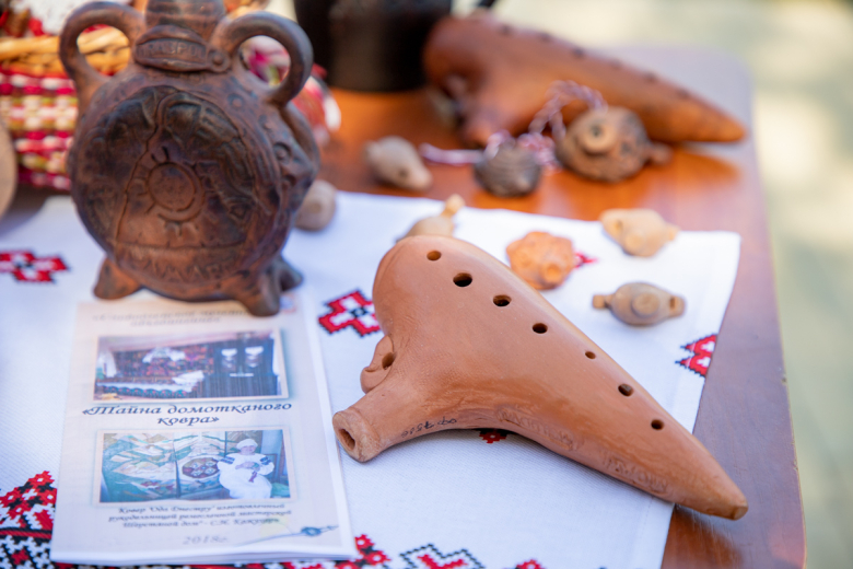 Среди экспонатов были и гребень для чесания шерсти, и моталка для пряжи, и прялка. Также свои изделия из шерсти и глины представила Светлана Кожухарь из ремесленной мастерской «Шерстяной дом "Миоара"».
