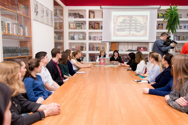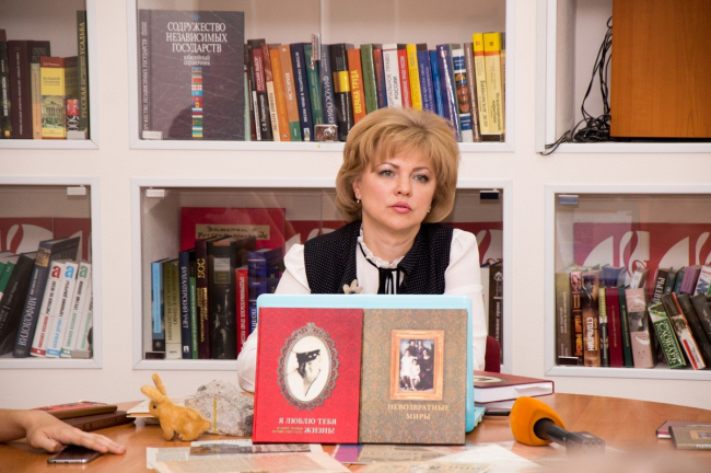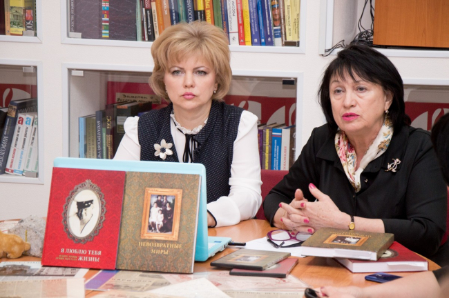 По итогам встречи в дар университетской библиотеке Илона Тюряева передала диски с электронными версиями книг, а также печатные варианты изданий.