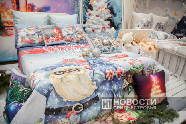 «Тут большинство новых коллекций. Это наши технологические новинки. Большое разнообразие рисунков и детских, и взрослых. Мы даже вот эти рисунки с домашними животными выпустили во взрослой линейке, и они тоже пользуются спросом. Также вышли рисунки, где мы используем напыления различными материалами. Это и серебро, и перламутр, и золото, и люминесцентные красители, которые светятся в темноте. У нас собственный дизайнерский центр, часть рисунков есть готовая, но большинство разработали наши художники», – провела экскурсию товаровед отдела розничной торговли Маргарита Минченко.