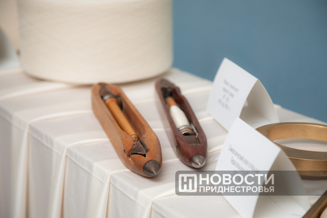 «В ткацком производстве такая же тенденция. Вот такой челнок был на первом ткацком станке в 1973 году. Из-за большой массы скорость была низкой. Сегодня установлены пневматические станки, где прокладка утка происходит с помощью воздуха, скорость повысилась со 100 до 800 оборотов в минуту. Т. е. производительность выросла в 8 раз. Вообще, за 50 лет у нас действительно произошёл революционный скачок в производительности: и в прядильном, и в ткацком производстве», – рассказал журналистам директор прядильно-ткацкого производства Иван Дамаскин.