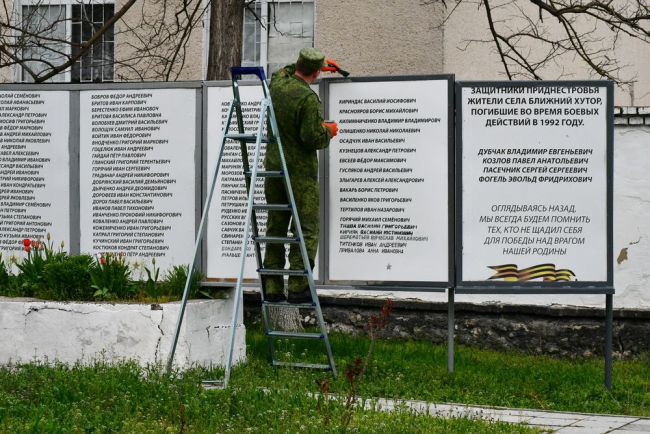 Тирасполь, 26 апреля. /Новости Приднестровья/. В преддверии 76-й годовщины Великой Победы сотрудники Отдельного резервного пограничного казачьего полка (ОРПКП) Министерства госбезопасности облагородили Мемориал Славы села Ближний Хутор.