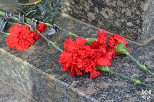 Сотрудники территориального отдела милиции возложили живые цветы к мраморной плите с высеченными именами Виктора Тюлеева, Анатолия Бурдюжи, Ивана Иорданова, сотрудников районного отдела милиции, погибших с оружием в руках, отстаивая законные права мирных граждан.