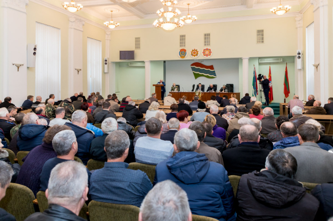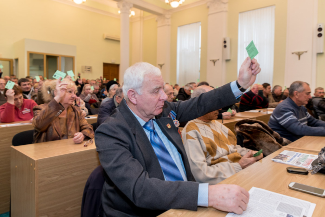 Тирасполь, 24 ноября. /Новости Приднестровья/. Сегодня в Тирасполе прошла отчетно-выборная конференция Тираспольского отделения «Союза защитников Приднестровья». Она собрала 133 делегата. Участие в конференции приняли также первый Президент ПМР Игорь Смирнов, заместитель председателя Правительства Станислав Касап, глава столичной госадминистрации Олег Довгопол, председатель Горсовета Тирасполя Альбина Иванова.