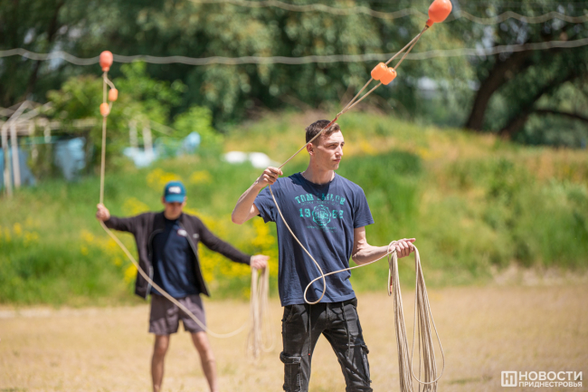 На городской пляж в Тирасполе приехали сотрудники аварийно-спасательных подразделений со всех городов и районов республики. В программе – метание круга и спасательной верёвки со специальным приспособлением, чтобы тонущий мог ухватиться за неё.