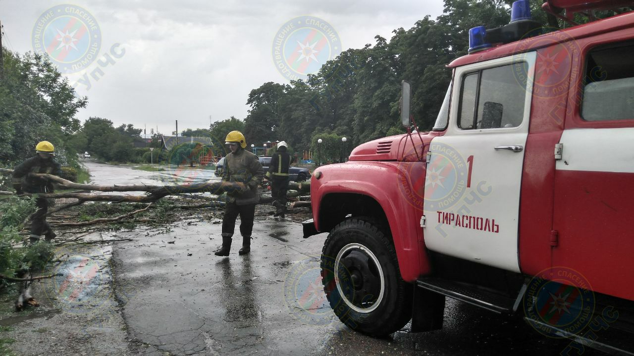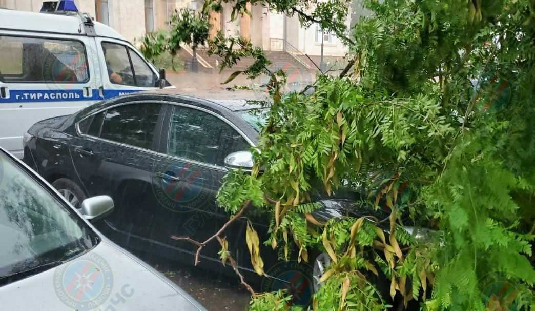 В Тирасполе в районе ЗАГСа упавшая ветка повредила припаркованный автомобиль. В столичном микрорайоне Кировский возле культурно-досугового центра «Мир» упало многолетнее дерево. За мгновение до этого мимо него проехали несколько автомобилей и прошли дети. Пожарные старую акацию распилили и освободили участок дороги.