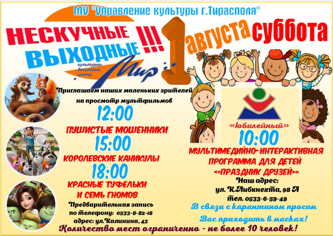 Культурно-досуговый центр «Мир» сообщает о возобновлении работы киноклуба «Мультимания». В 12 часов 1 августа там можно будет посмотреть семейную премьеру «Пушистые мошенники». В 15:00 там покажут «Королевские каникулы», а в 18:00 - «Красные туфельки и семь гномов».