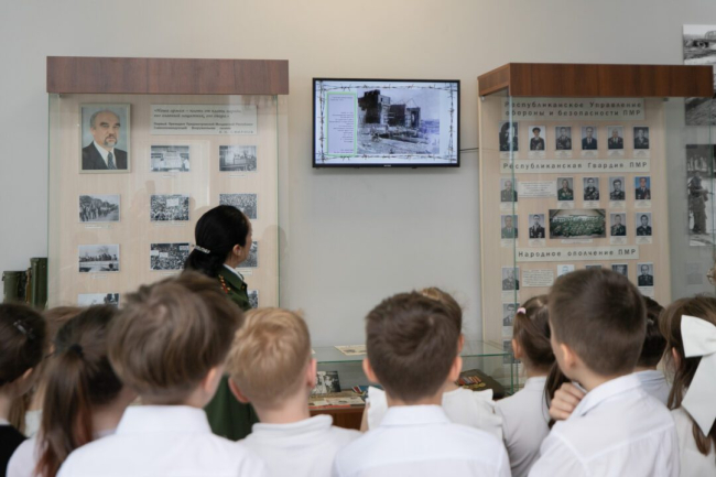 Как сообщает пресс-служба Минобороны ПМР, третьеклассники одной из столичных школ ознакомились с экспонатами времен Великой Отечественной войны: оружием, орденами и личными вещами солдат.