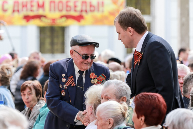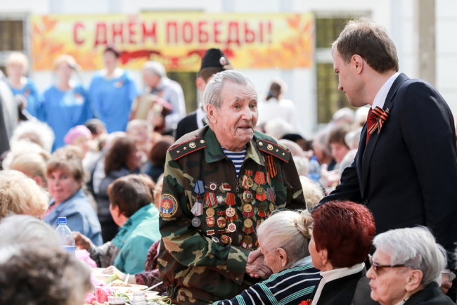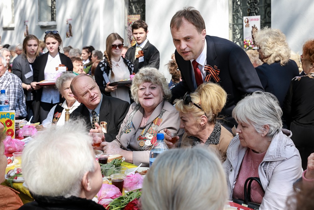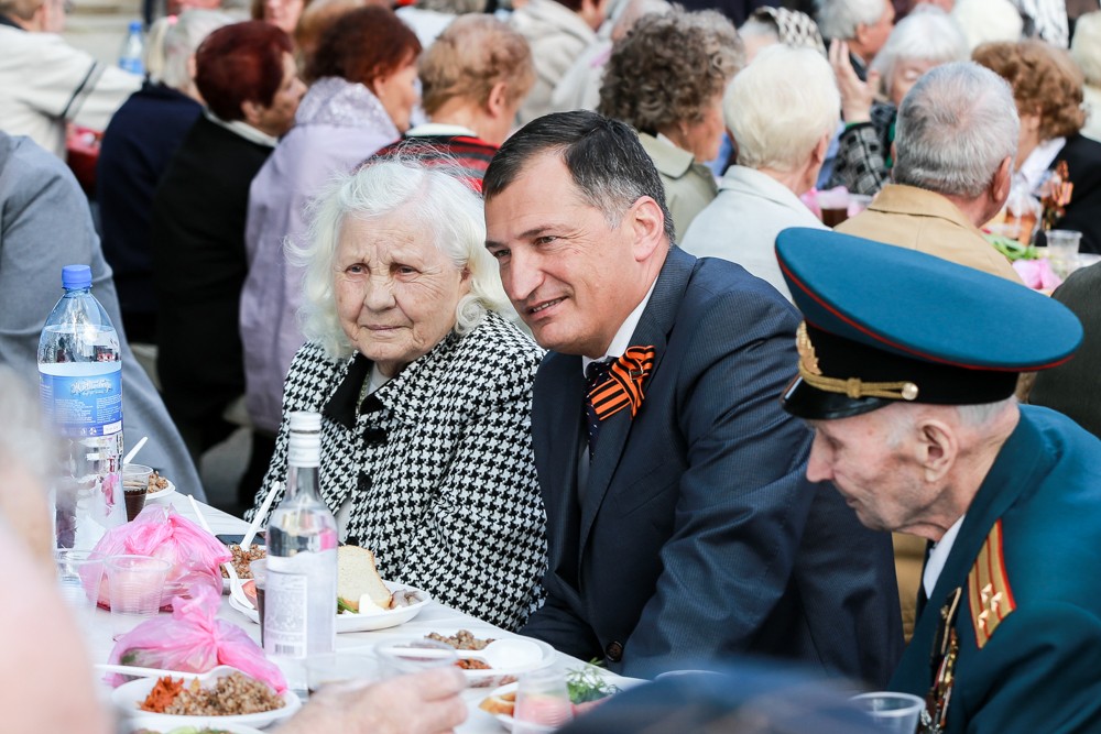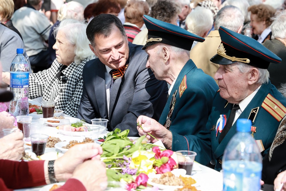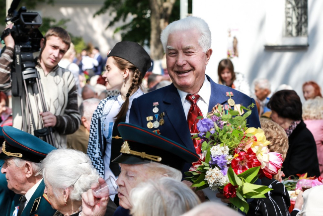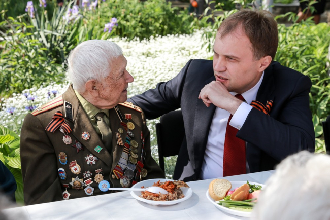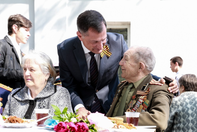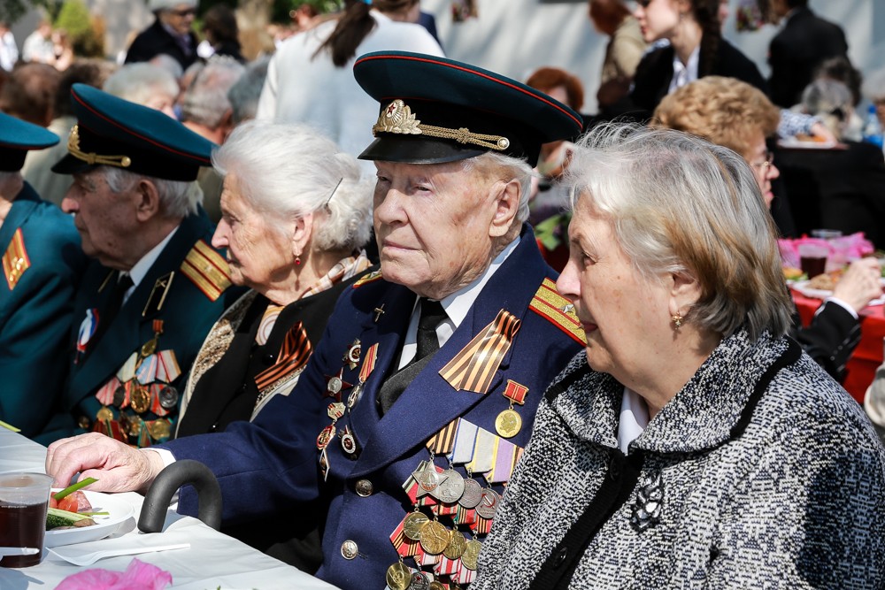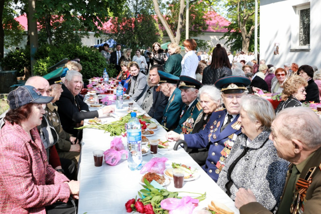 Пообщаться с ветеранами пришли и первые лица государства. В этом году за одним столом с ними сидели Президент Евгений Шевчук, Председатель Правительства Павел Прокудин и спикер Верховного Совета Вадим Красносельский.