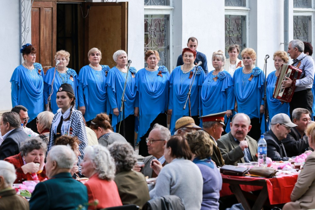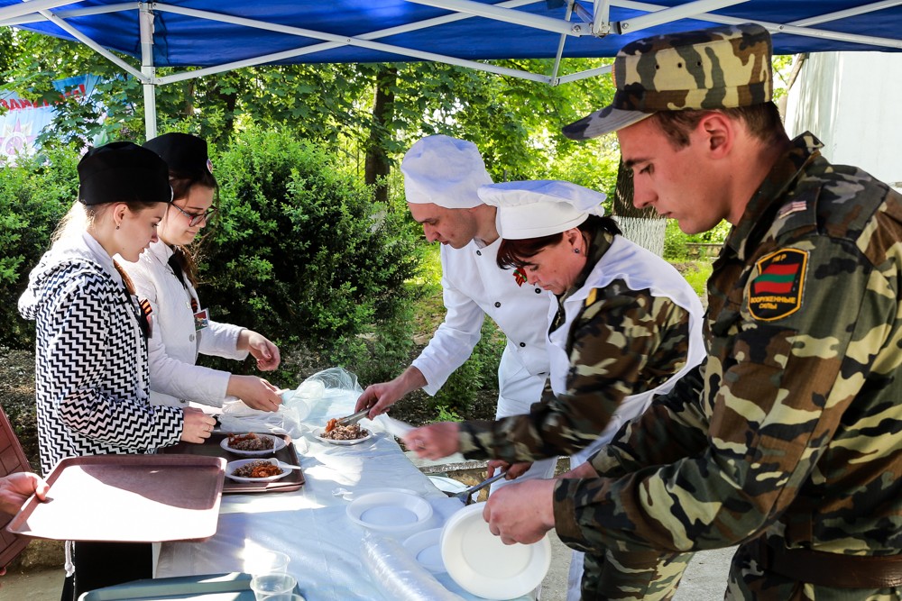 Второй год подряд всё это проходило во дворе Тираспольского объединённого музея, где с самого утра звучали песни и стихотворения военных лет, а у входа гостей встречала небольшая тематическая выставка.