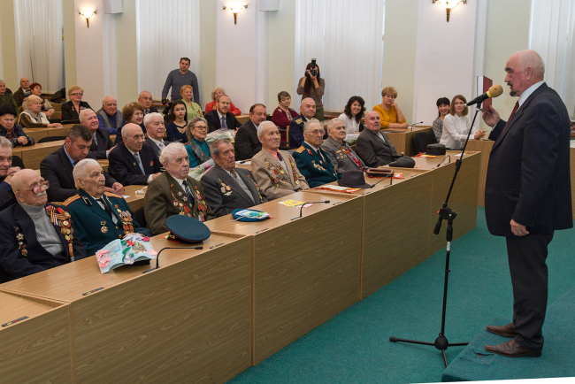 «Это те, кто завоёвывал победу на фронтах Великой Отечественной войны, кто без сна и отдыха выковывал её в тылу, кто в мирное время строил наше будущее, воспитывал и учил нас, кто охранял наш мир и покой в рядах Вооружённых сил. Но нигде ветеран не найдёт такого понимания, как в кругу своих соратников, товарищей по оружию и труду, которых объединяет ваша организация. Выражаю глубокую благодарность за вашу общественную работу, за вашу помощь государству и вклад в его дальнейшее развитие», – отмечалось в поздравлении.