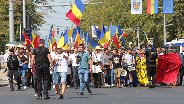 Сторонники объединения Румынии и Молдовы проводят митинг в центре Кишинева