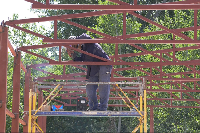 «На сегодняшний день у нас с нуля сделан фундамент, завершена кладка несущих стен. Сейчас идёт подготовка уже к установке металлических ферм – несущих конструкций для кровли. Рабочие делают лестничные марши и сидячие места. В сроки укладываемся. В следующем году планируем провести внутриотделочные работы в помещениях под трибунами и проложить коммуникации», – рассказал ИА "Новости Приднестровья" замглавы госадминистрации Григориопольского района по ЖКХ Валерий Дмитриев.