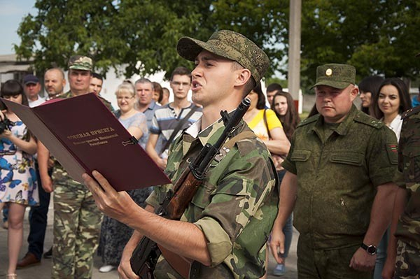 Тирасполь, 8 июля. /Новости Приднестровья/. 75 студентов Приднестровского государственного университета им. Т.Г. Шевченко, обучающиеся по программе подготовки офицеров запаса в Военном институте Министерства обороны ПМР им. генерал-лейтенанта А.И. Лебедя, приняли сегодня военную присягу. Торжественная церемония началась с выноса боевого знамени, сообщает пресс-служба ведомства.