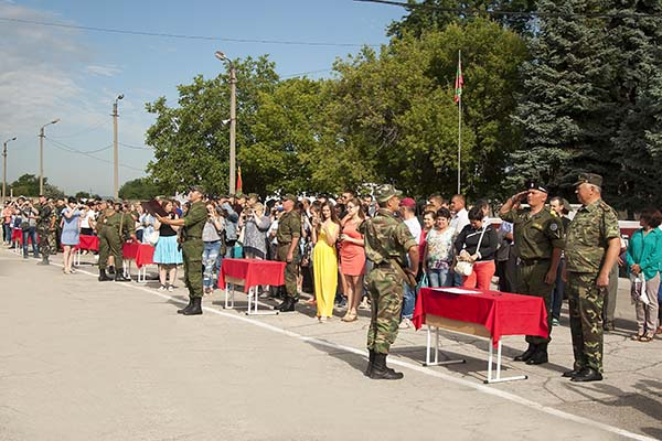 «На протяжении двух лет вы совершенствовали свои военно-профессиональные навыки, которые позволят вам в последующем пройти службу в Вооруженных силах. Впереди вас ждут очередные занятия, которые повысят ваш уровень боевой готовности. Вы — будущие офицеры Вооруженных сил Приднестровской Молдавской Республики. Я надеюсь, вы достойно пронесете знамя Победы своих дедов, прадедов, отцов», — отметил министр обороны, полковник Олег Обручков.