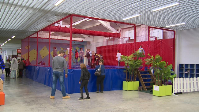 Попрощавшись с Дедом Морозом и Снегурочкой, дети направились в игроленд: пока одни весело прыгали на батуте, другие лазали по стенам.