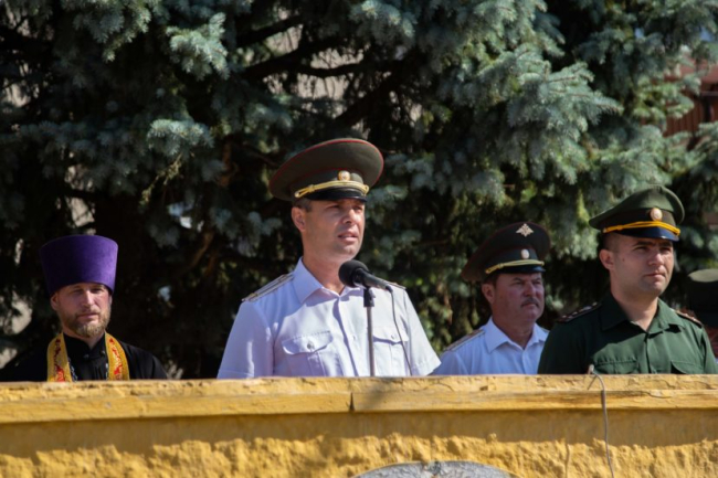 С принятием военной присяги будущих офицеров поздравил заместитель министра обороны подполковник Александр Доников.