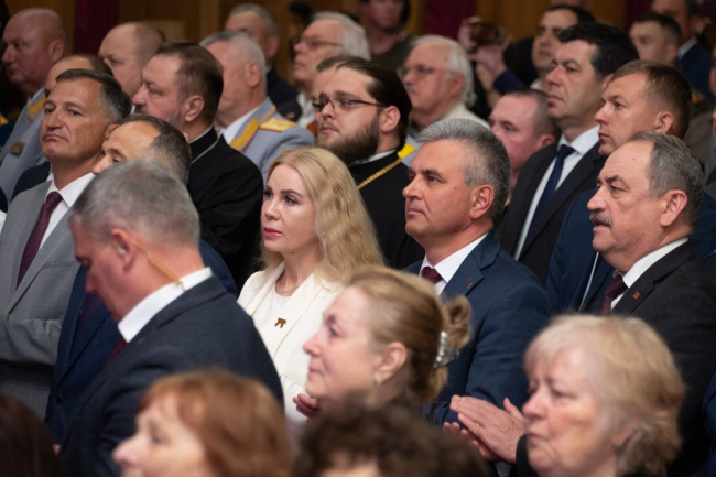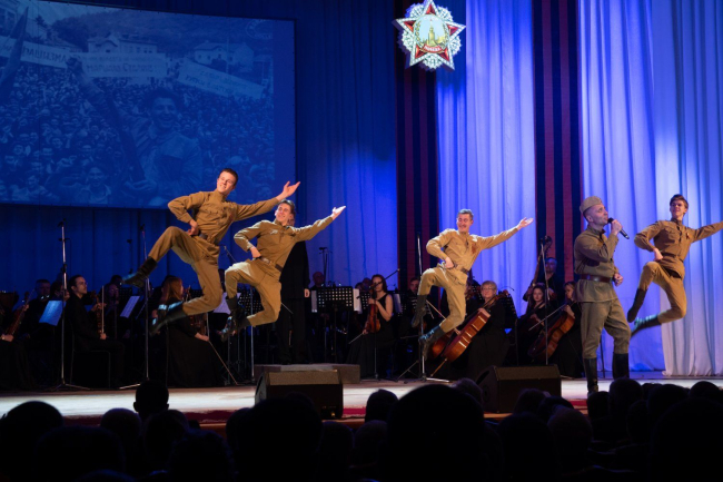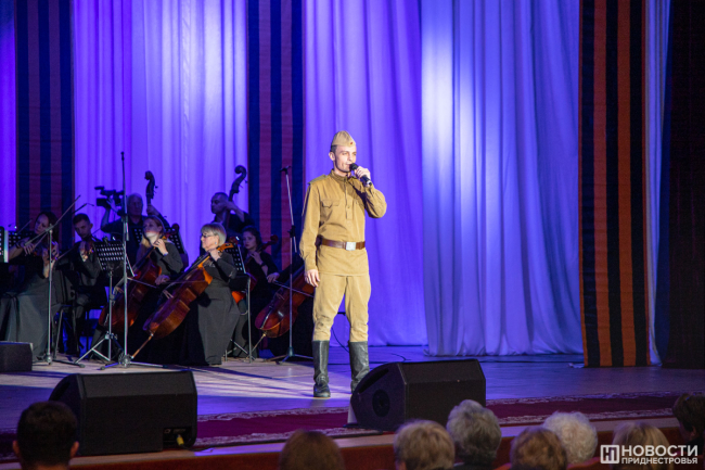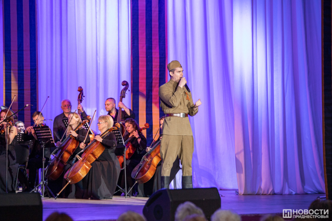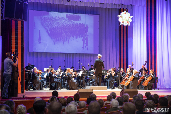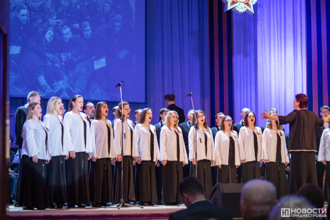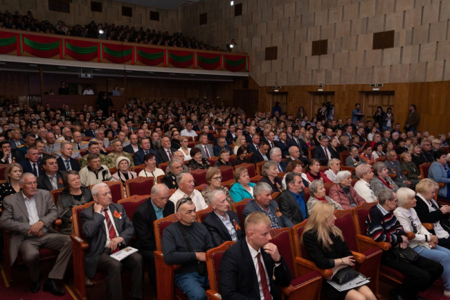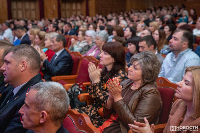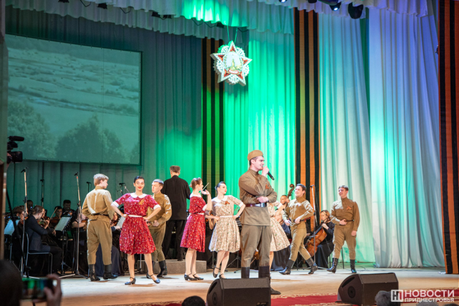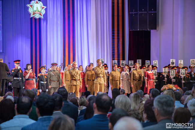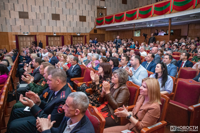 Творческие номера лучших художественных коллективов Приднестровья – подарок им и всем, кто чтит историю и подвиг советского солдата. Среди зрителей – Президент Приднестровской Молдавской Республики Вадим Красносельский с супругой Светланой Красносельской, сообщает президентская пресс-служба.