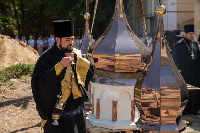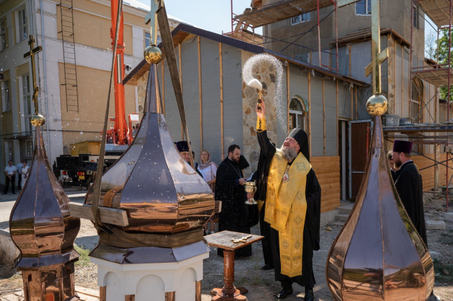 Тирасполь, 4 августа. /Новости Приднестровья/. В Тирасполе продолжается строительство университетской церкви. На территории студенческого городка возведен храм Святой мученицы Татианы. Каменное строение на основательном фундаменте сменило временно установленный деревянный храм. Впереди – отделочные работы. Сегодня состоялось водружение первого из трех накупольных крестов. Чин его освящения провел Архиепископ Тираспольский и Дубоссарский Савва. Свидетелями значимого события стали супруги Красносельские, сообщает пресс-служба главы государства.