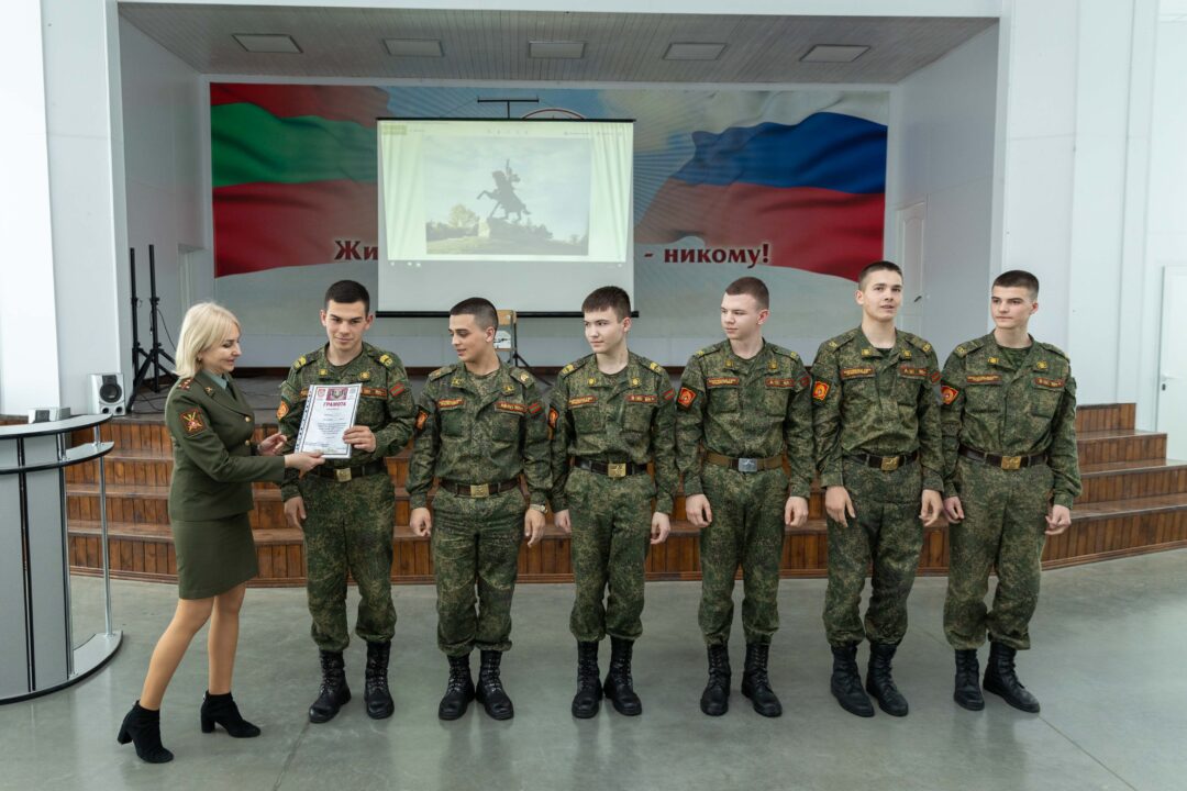 Дипломами наградили сегодня суворовцев за победу в республиканском историческом конкурсе «Моя страна – мое Приднестровье». Команда суворовцев пятого, шестого и седьмого курсов заняла в нем первое место, сообщает пресс-служба Минобороны ПМР.