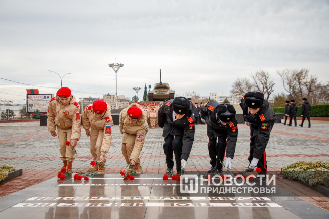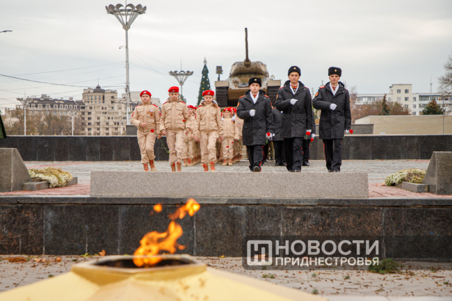 Сегодня в Тирасполе к Вечному огню на Мемориале Славы возложили цветы суворовцы и юнармейцы ОГРВ.