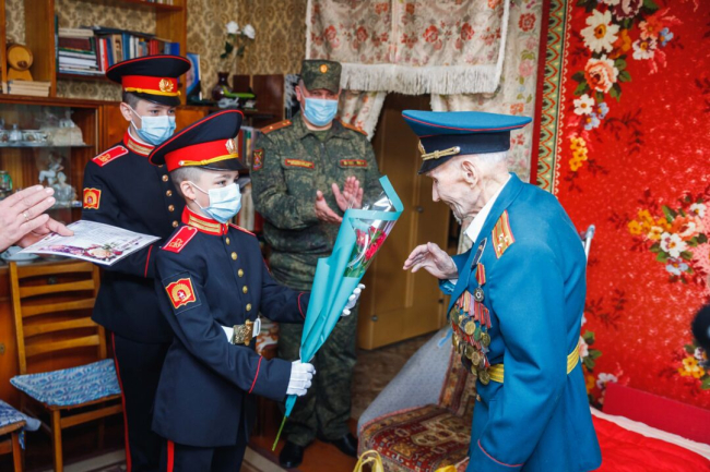 Суворовцы поздравили ветерана Великой Отечественной войны Ивана Николаева с юбилеем