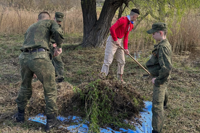 Суворовцы вышли на субботник для благоустройства памятных мест